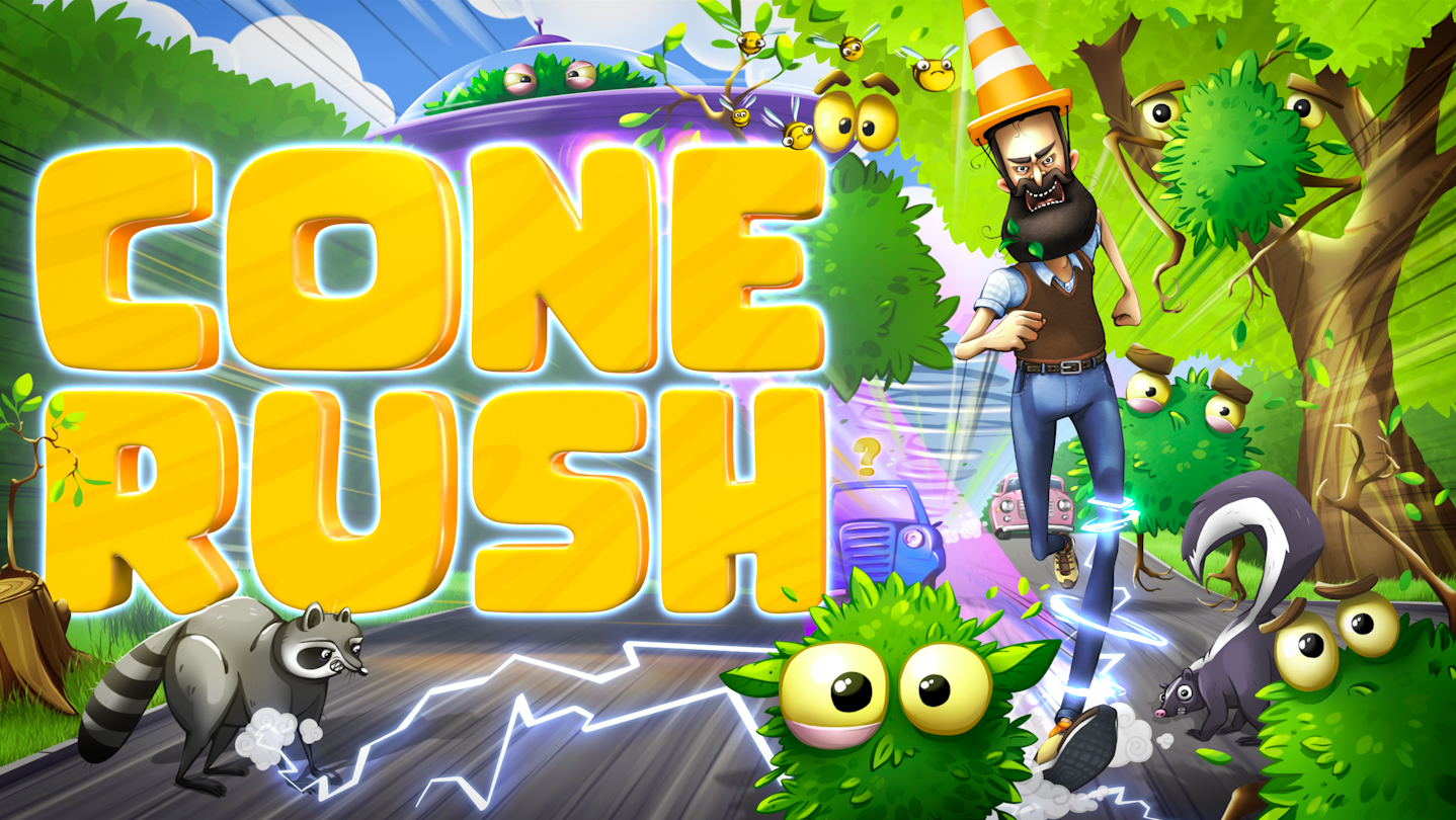 Step into the silly world of Cone Rush! The neighborhood is under attack and ConeMan's paranoia knows no bounds — the only way to stop it is by destroying alien bushes.
