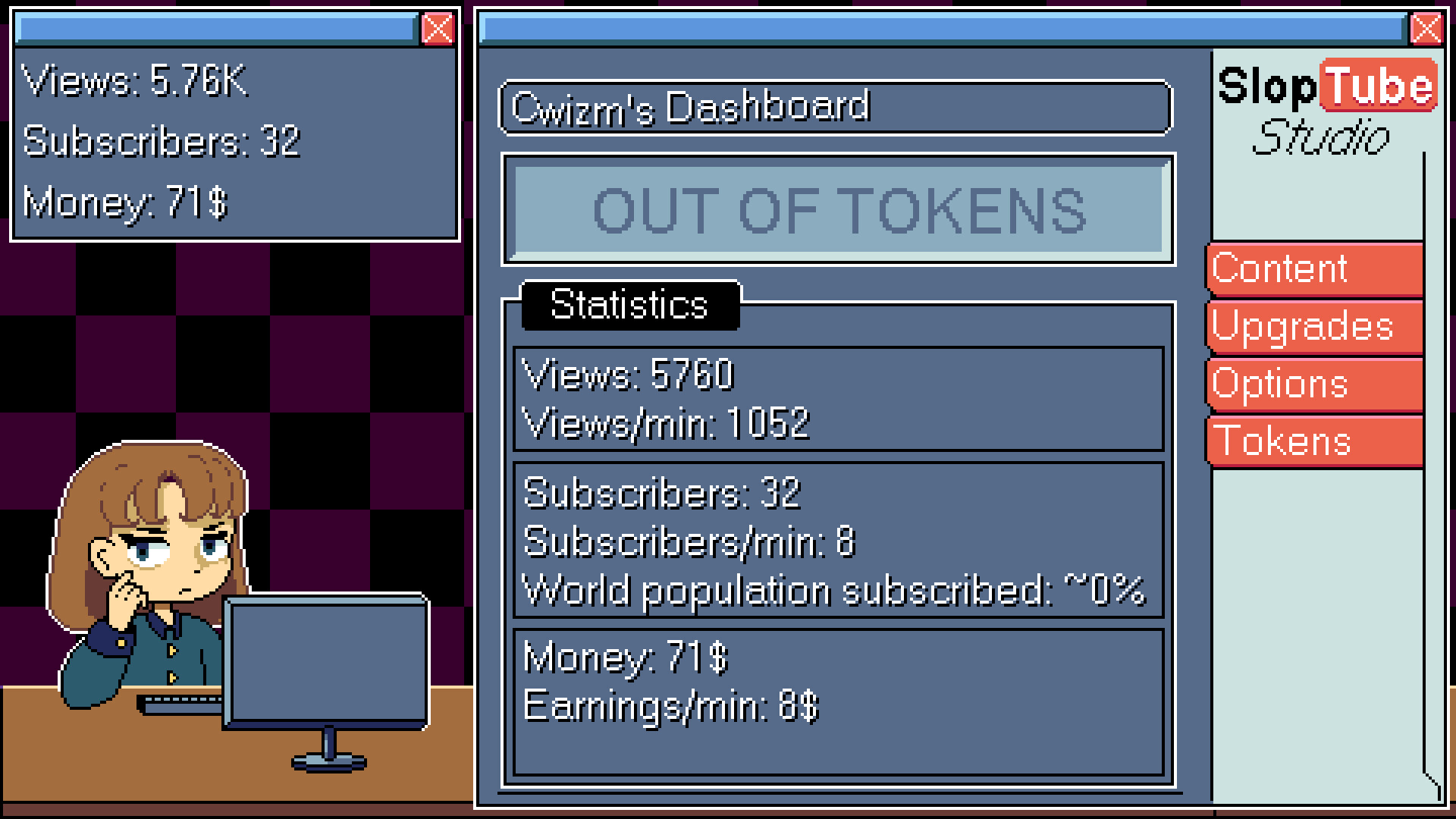 SlopTuber Simulator is a short incremental adventure about filling the internet with worthless video content for fun and profit (Mostly for profit)!