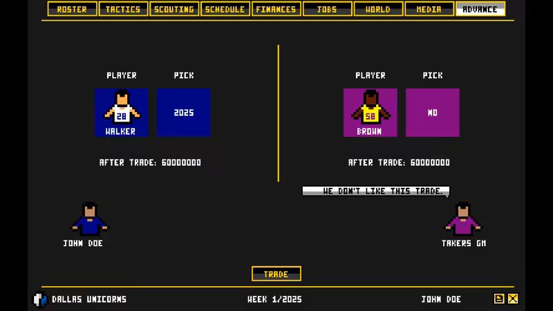 Choose your lineup, playbook and defensive instructions. Watch or sim games to see if they work!