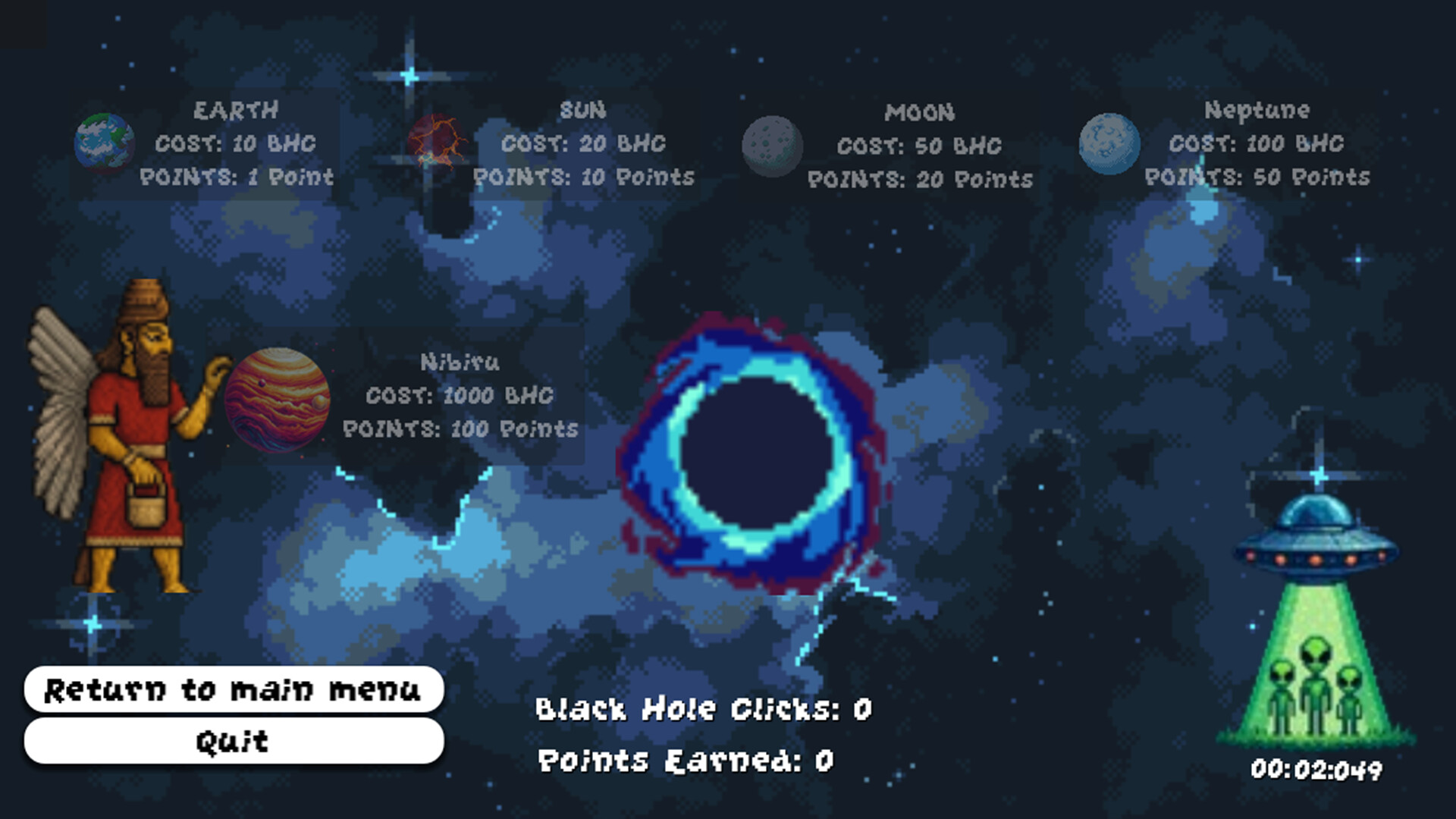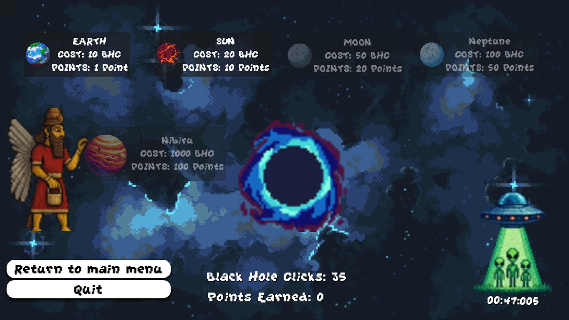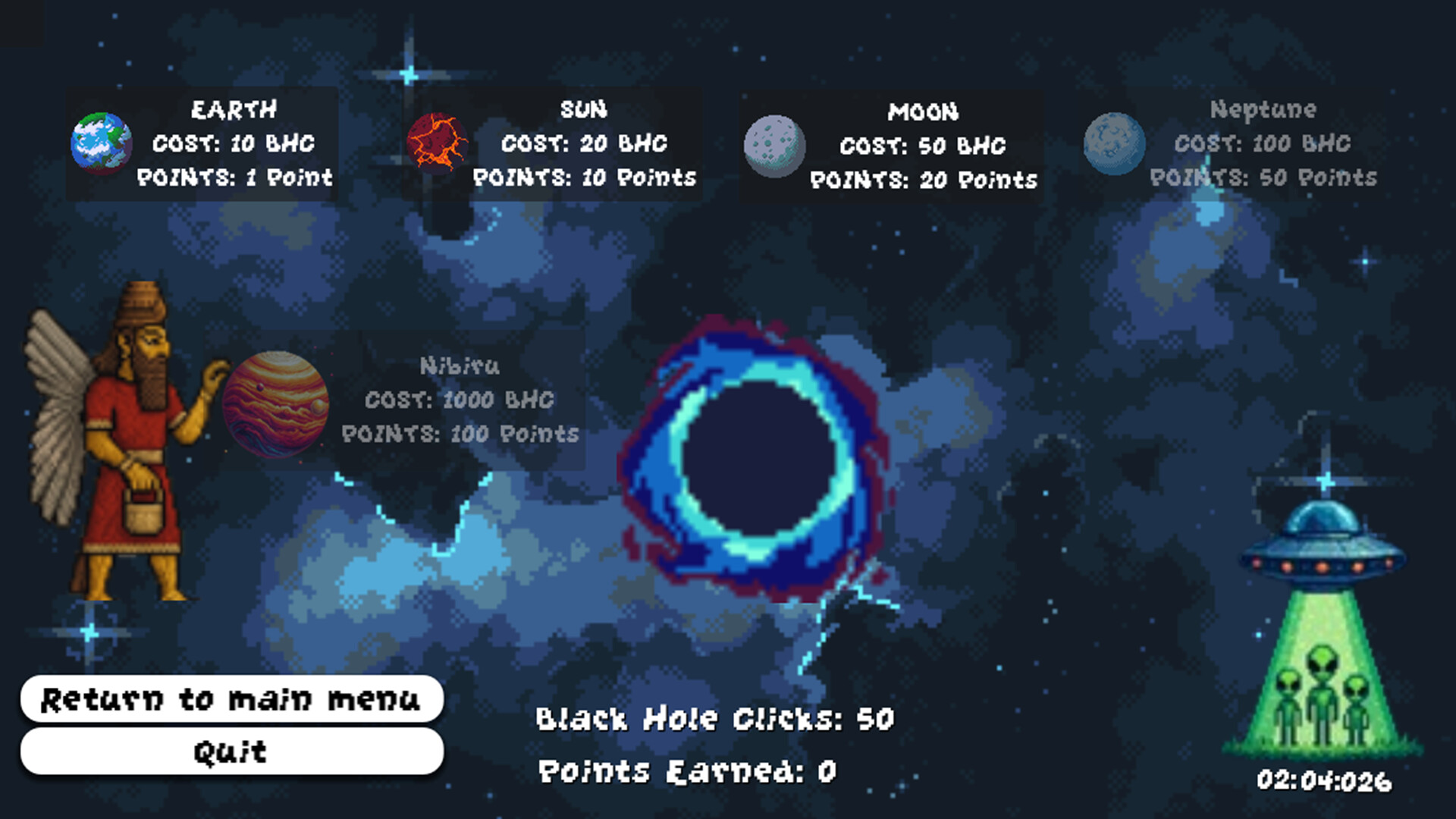 • The feature to harvest the universe's resources to resurrect and click to the Nibiru Planet is exclusive to the full game and not present in this demo.