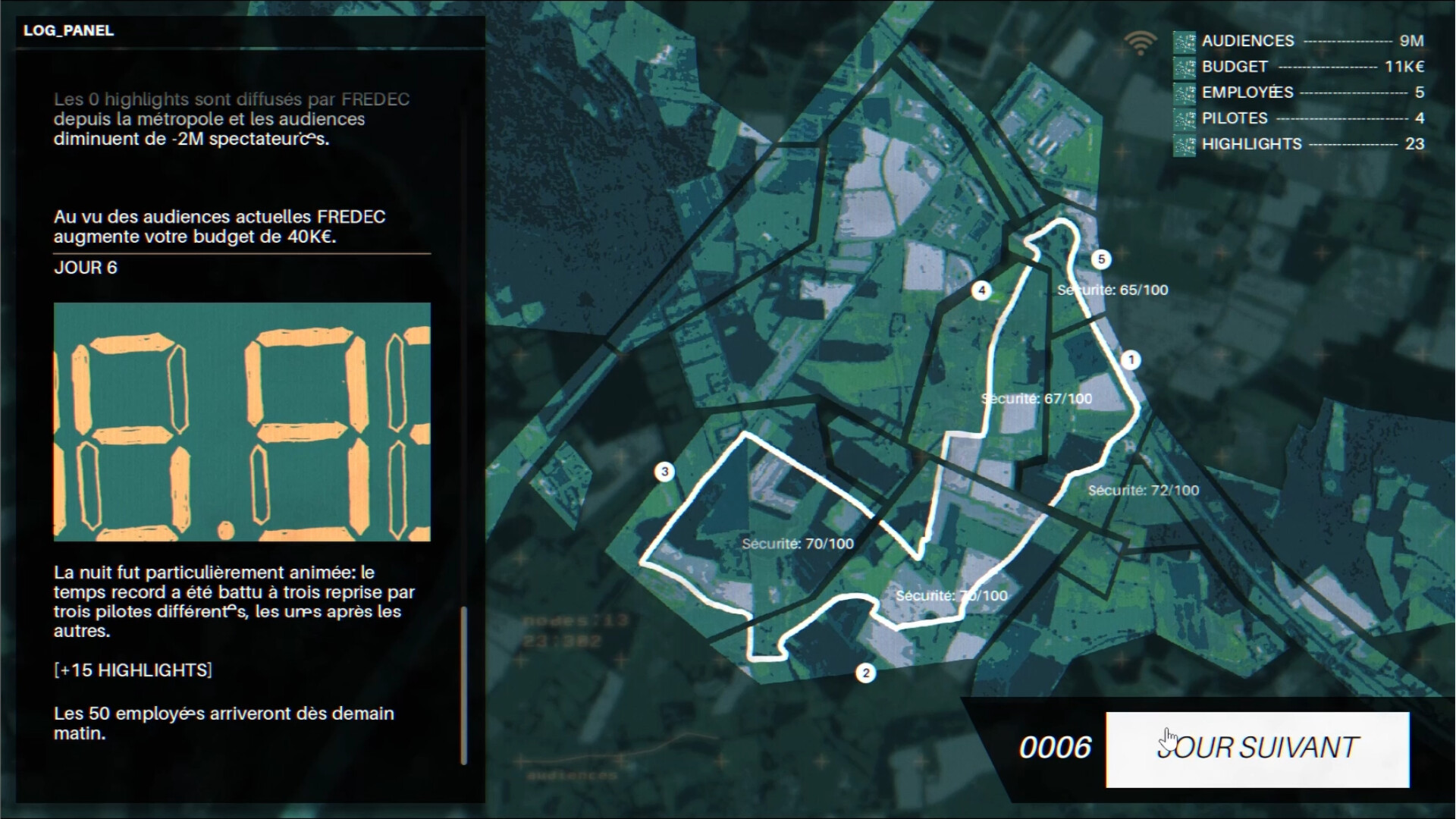 April 14th 2131. The races are going well. There has been a minor accident yesterday, nothing dramatic. Audiences even went up by 4 millions. I saw a flock of birds taking off this morning by the antenna. Beautiful. Season 31 is a narrative strategy experience about degrowth and embracing change.
