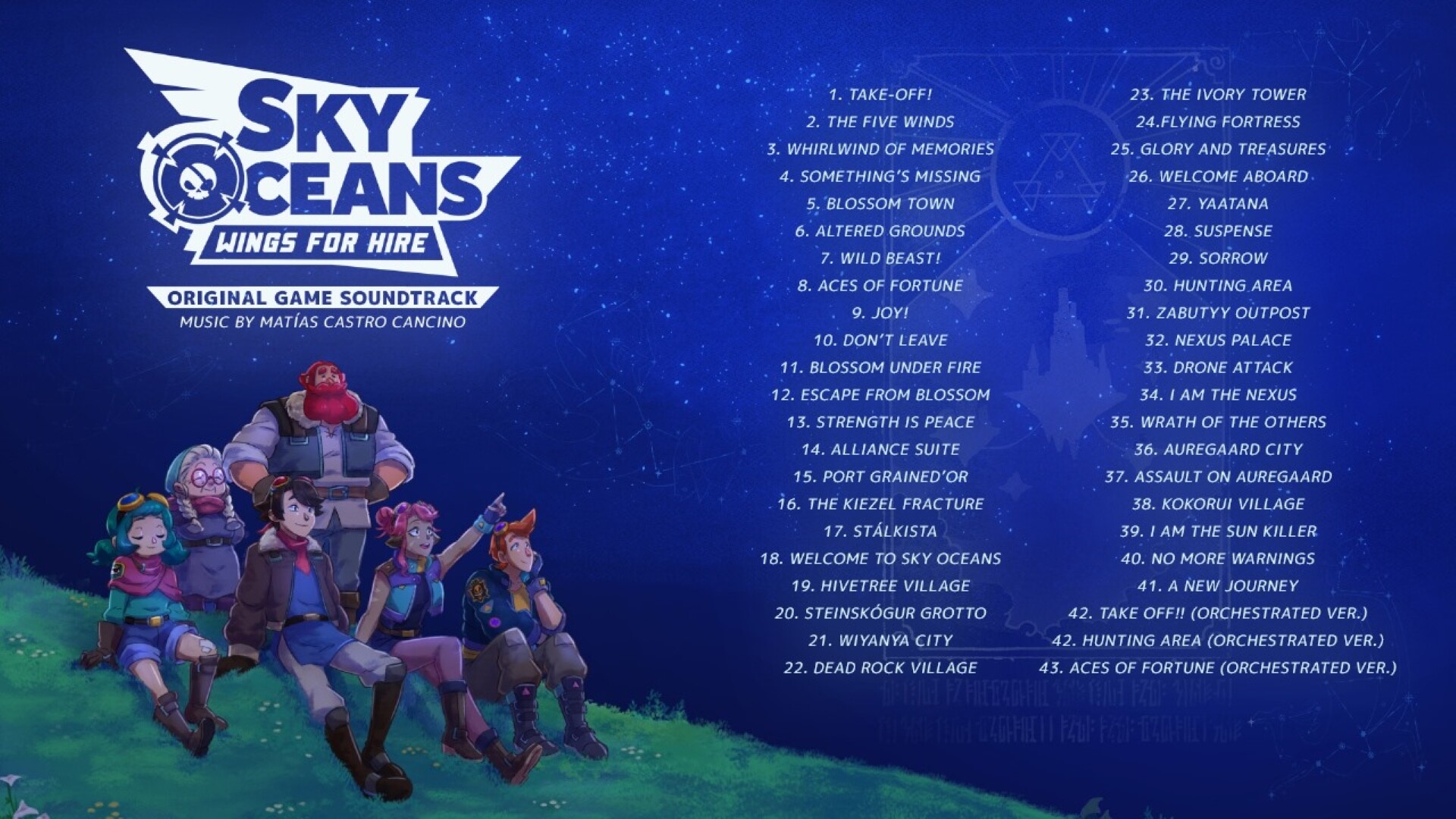 Soar back into the clouds with the official Sky Oceans: Wings for Hire Original Soundtrack. Composed by Matías Castro Cancino, the album blends sweeping themes, intimate character moments and high-stakes battle cues that capture the heart of Glenn Windwalker’s journey and the spirit of his crew. This anniversary release includes new recordings that highlight fan-favourite motifs and the signature sound of Sky Oceans.