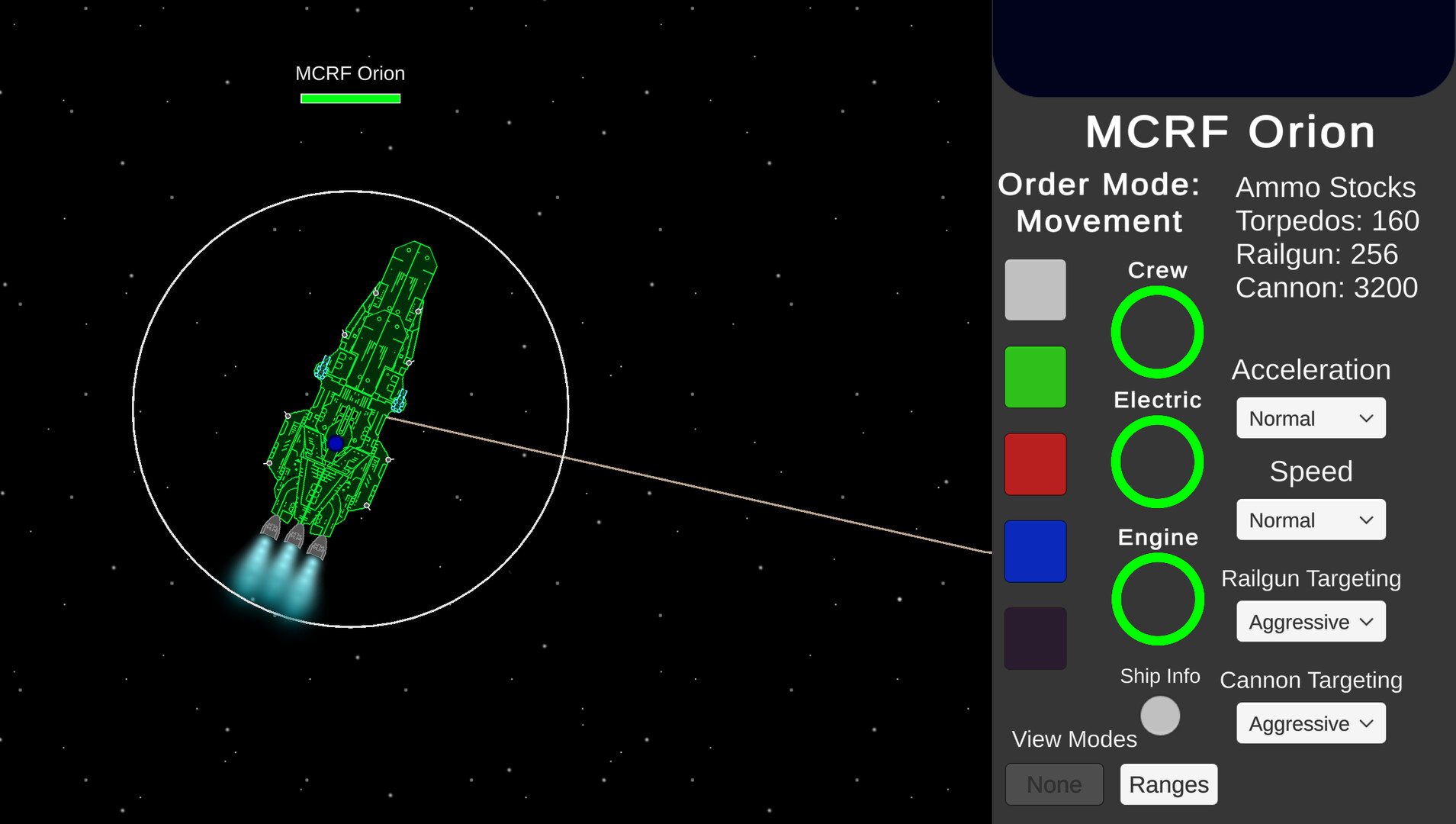 A pausable 2D real-time strategy game where you command Mars' ships in zero-gravity space battles using realistic Newtonian physics. Outmaneuver Earth’s forces with smart positioning, thruster control, and tactical use of cannons, railguns, and torpedoes.