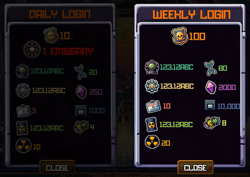 There are also daily login bonuses, weekly login bonuses, extra idle gains while playing that store in a chest, and offline progression and gains.