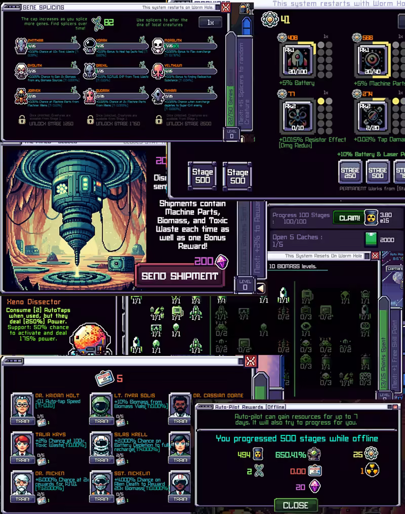 Dive into sci-fi alien worlds where you deconstruct aliens into parts to upgrade your base.