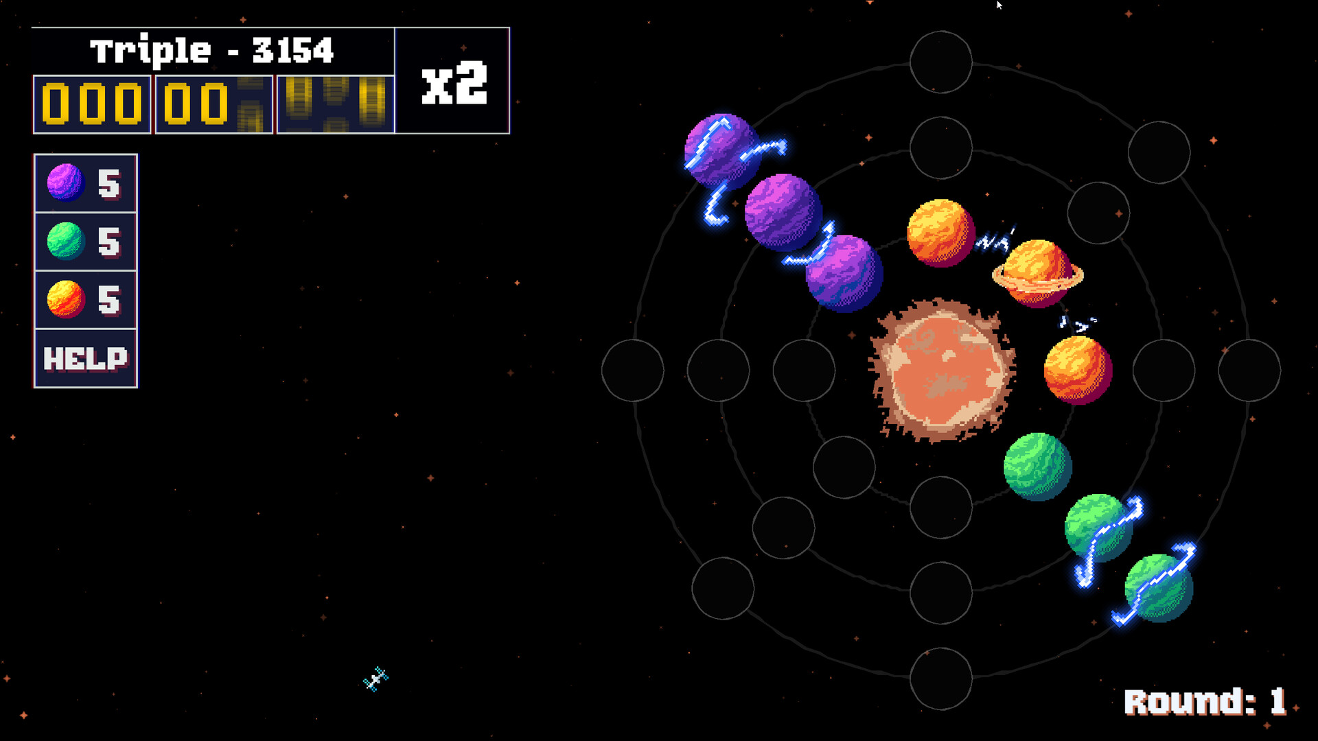 Strategically place cards to create combinations out of planets of the same type! Plan your moves across multiple orbital rings. Plan ahead - what works now might not work after the next rotation.