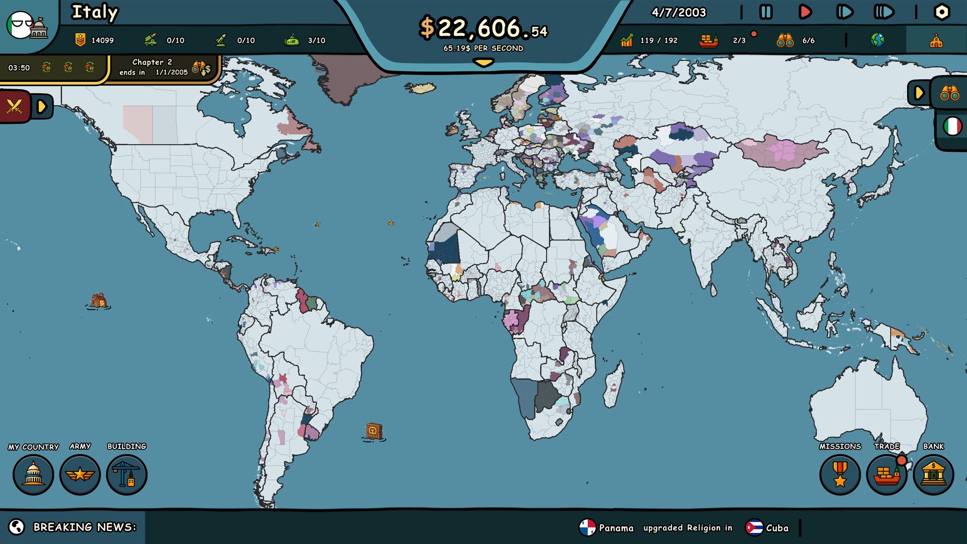 Spread your faith across borders and watch nations fall under your spiritual charm. Use religion as a tool of power—win hearts, shift ideologies, and unify the world without firing a single shot.