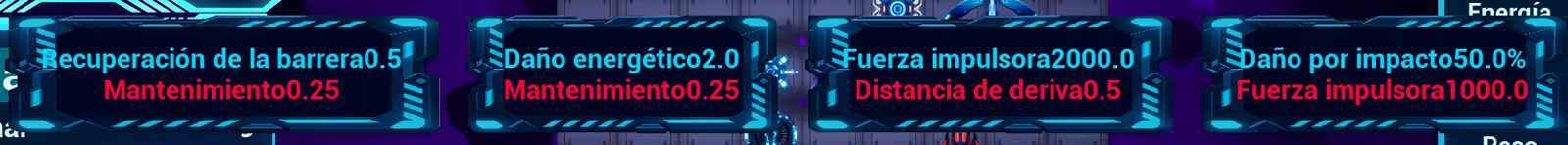Modifica los atributos de tu nave según tu construcción. No solo puedes aumentarlos, sino que reducir alguno de ellos podría incluso generar efectos inesperados.