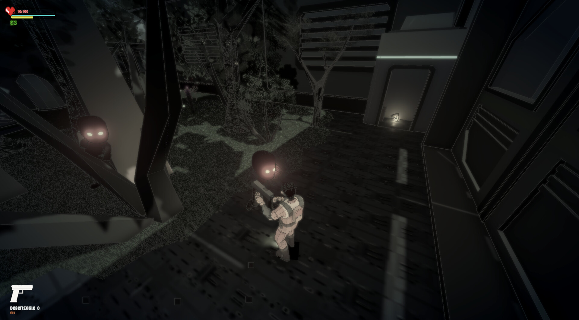 Beside exploration, combat against low poly monsters and zombies is a part of the game's survival aspect. There is blood and cartoonish mutilation (e.g arms of the zombies may disappear when shot)