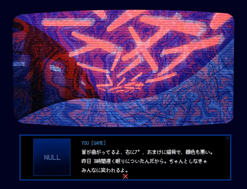 You are [GAME]. A universally hated destructive mental health horror novel, where you [TALK] with a slightly delusional game developer, debug their creation, and guide the game to “completion.”