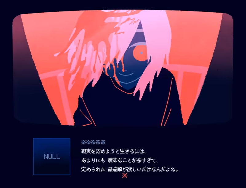 You are [GAME]. A universally hated destructive mental health horror novel, where you [TALK] with a slightly delusional game developer, debug their creation, and guide the game to “completion.”