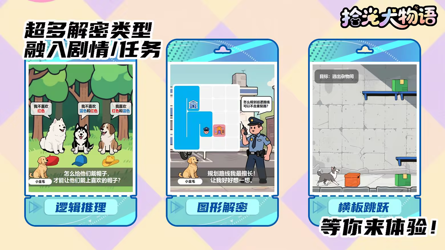 在一片被暖阳与绿荫环抱的土地上,坐落着一座名为 “拾光镇” 的奇妙小镇。生活在小镇中的狗狗们各个都是收藏家,探索小镇收集稀有收藏品的同时,逐渐了解狗狗们过去的故事。这是一个连风都裹挟着温馨的地方,每一寸土地都记录着人们与狗狗之间的温情故事。 超多超有梗的稀有收藏品,等你来发现。 剧情+解密温情时刻:主线+支线多种解密元素融入场景和剧情,超多NPC,感受人与动物的温情瞬间。 装扮+经营治愈体验:从零打造温馨狗窝,经营餐厅成为大厨,超多配饰装扮个性狗狗。