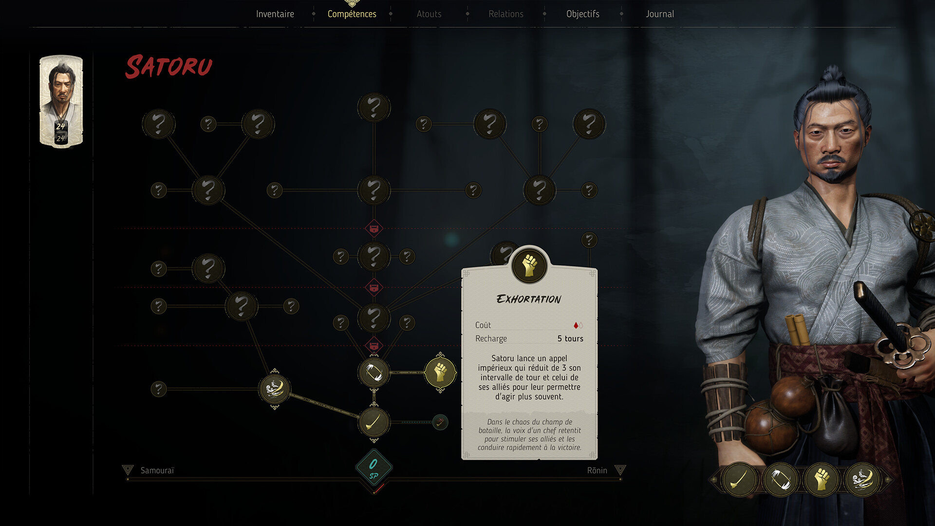 Plongez dans des combats classiques au tour par tour assortis de tactiques de samouraï épiques. Tous vos personnages apportent sur le champ de bataille leur propre combinaison de compétences et capacités. Leurs objectifs personnels et leurs relations ont aussi une influence sur le dénouement de chaque rencontre. Maîtrisez ces dynamiques sociales et stratégiques, et vous imposerez votre loi à coup sûr.