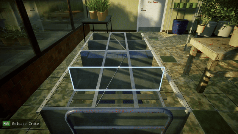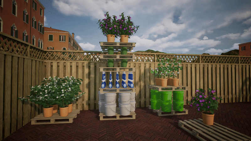 • Place shelves, tables and planter boxes (12 total items)