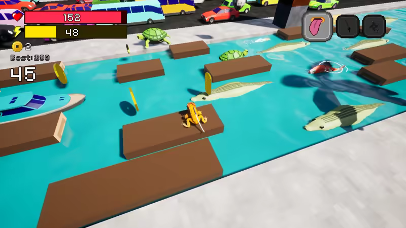 Dash, slash, and leap through a chaotic semi-open world as a katana-wielding frog on the run. Outsmart enemies, dodge vehicles, and survive an ever-accelerating cloud of poison.