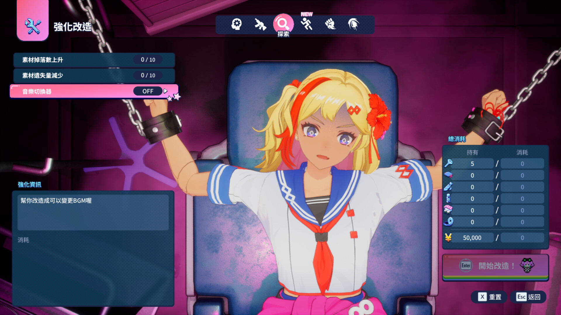 ※遊戲推進至一定進度即可於強化改造選單設定變更。"