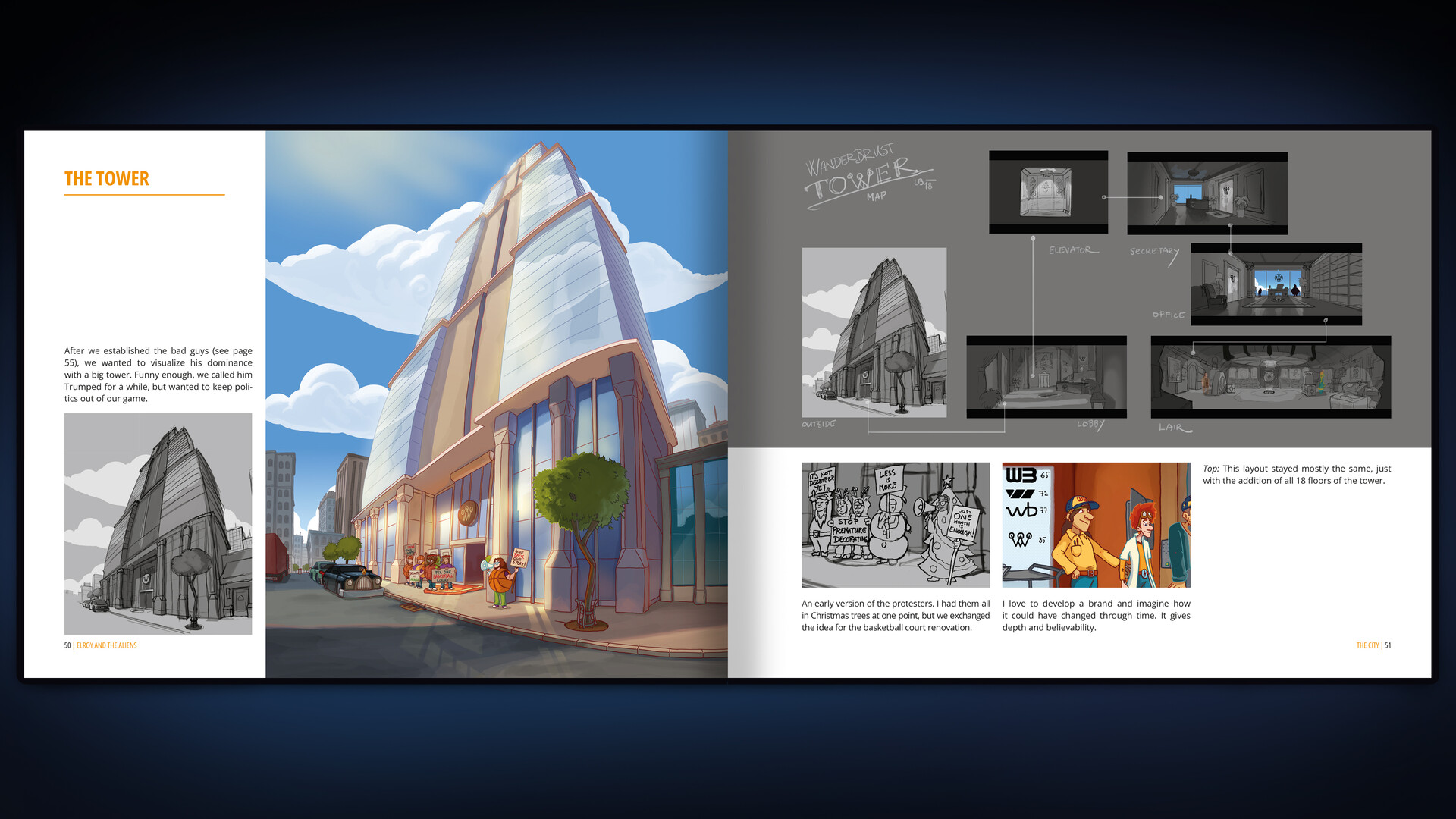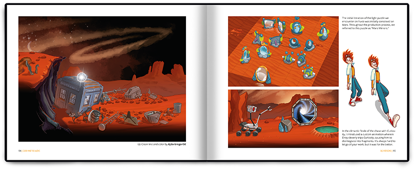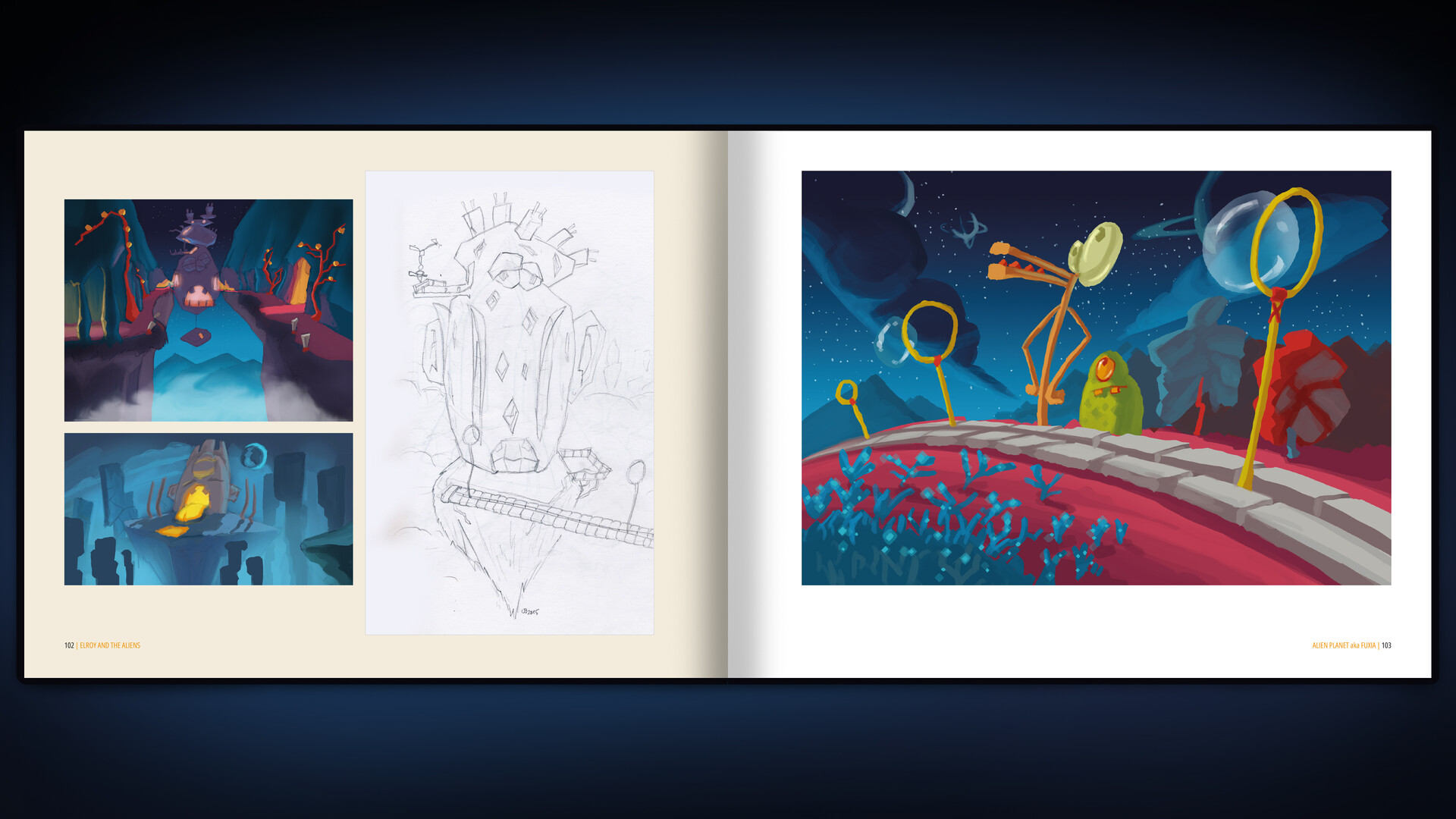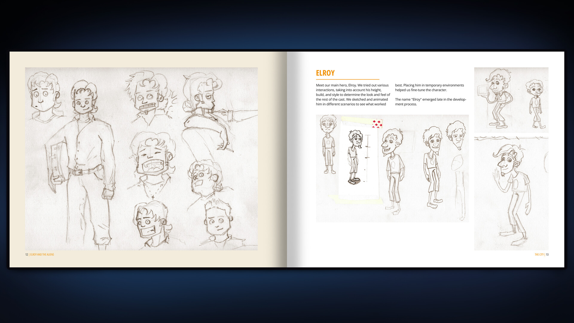 The Art of Elroy and the Aliens is a comprehensive visual look at the game's creation, from start to finish. This digital Artbook touches upon the development of the characters, backgrounds, and storytelling. In its pages, you will find early pencil sketches, digital paintings, character design, frame-by-frame animations, and more. It's accompanied by stories and anecdotes behind the game's production.