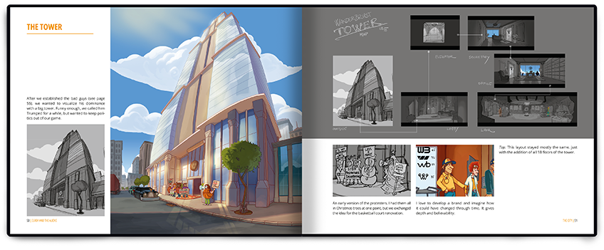 Added is also a whole section that talks about and shows the first two versions of the game, how it was, how it evolved, and all the art that ended up on the cutting floor.