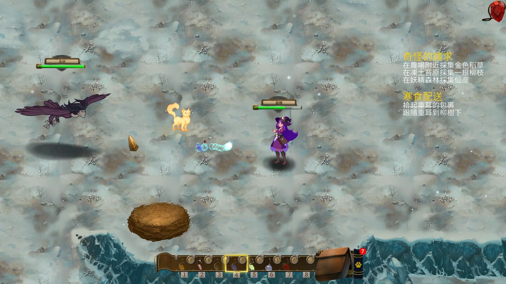 運用你的智慧與魔藥儲備解決各種謎題,在奶奶(一位強大的女巫!)和貓咪赫利俄斯的幫助下,你定能克服魔法之地裡的各色挑戰。