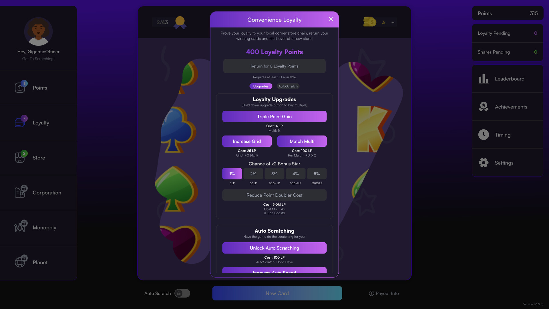 Scratch cards, earn points, and grow your empire in this idle/incremental game.