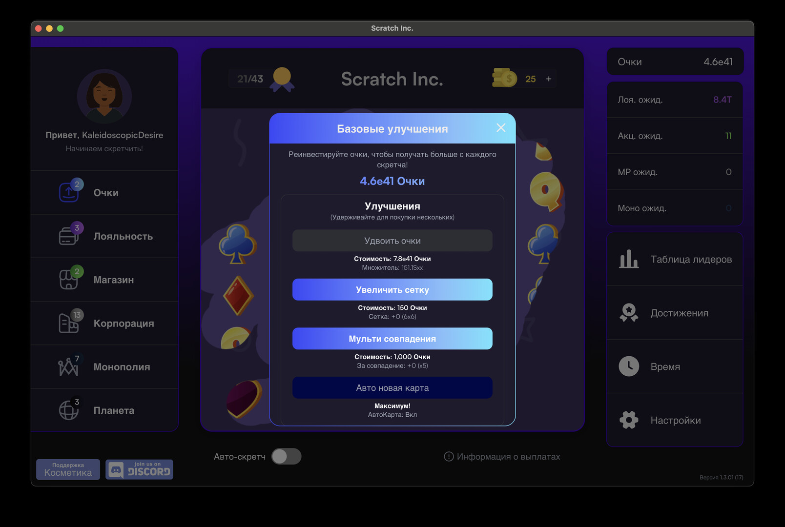 Прокачивайте карточки, открывайте автоматизацию, престиж в разных индустриях и поднимайтесь в таблицах лидеров.