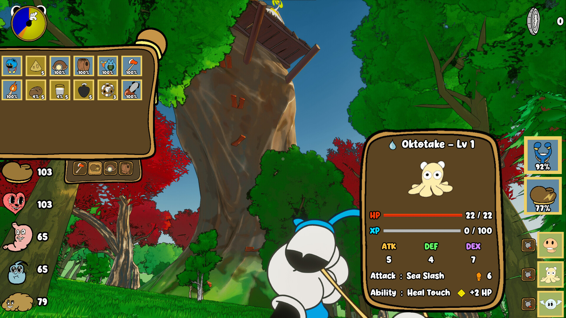 Nicht alle Kreaturen sind freundlich! Stelle Waffen mit Vintage-Flair her, einschließlich Gewehren, die aussehen, als kämen sie direkt aus einem alten Cartoon, und bereite dich auf explosive Begegnungen vor.