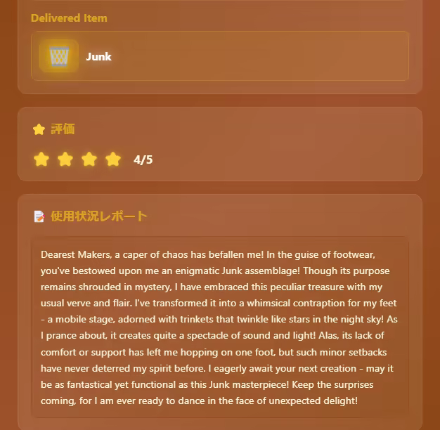 In "Astral Alchemist," craft items with wild ideas to solve problems! Our cutting-edge(!?) AI generates unique quests and descriptions. Give "Junk" for a mansion, or serve "Potato-Potato-Potato-Curry." The choice is yours. Unlock achievements!