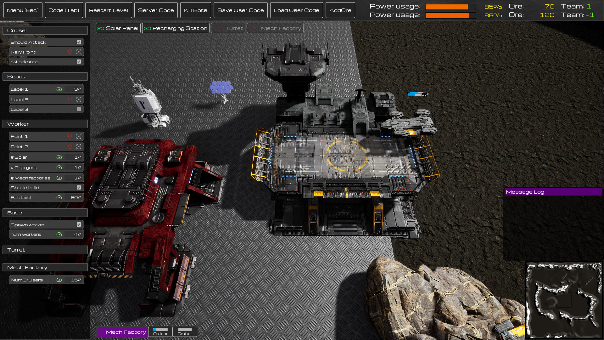 A classic RTS with a major twist. Your units are fully autonomous drones. Every unit runs code which you design using an intuitive visual coding interface. Automate everything from mining, to combat, even unit production.