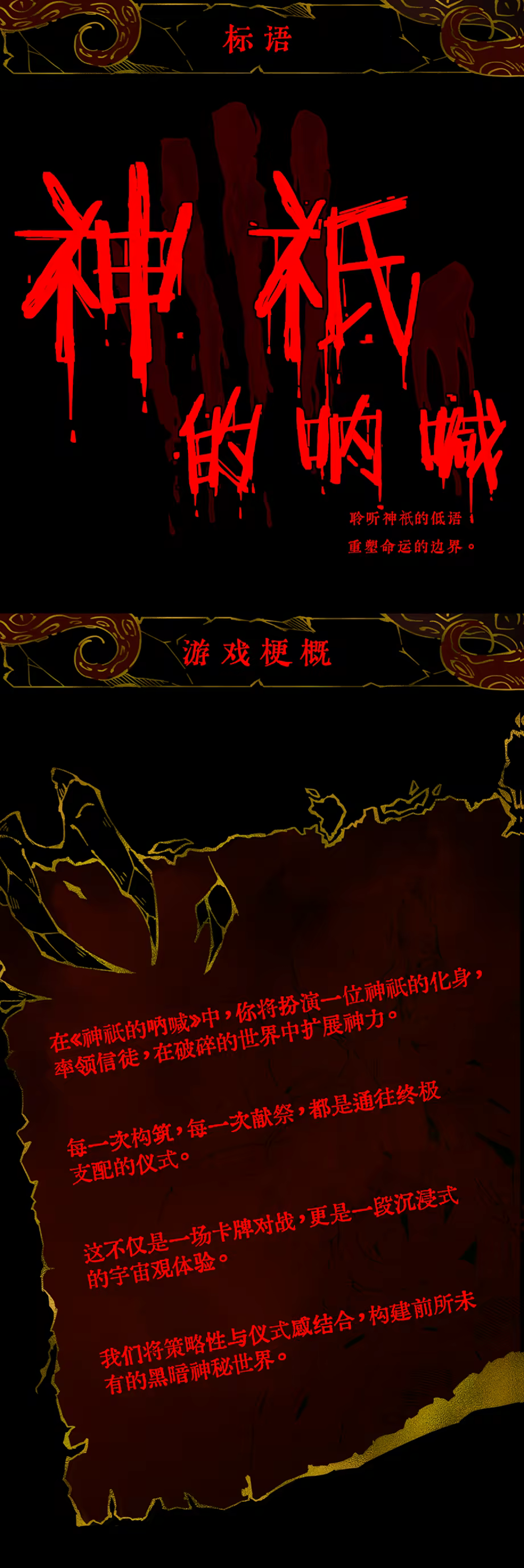 你将扮演一位神祇的化身,率领信徒,在破碎的世界中扩展神力。每一次构筑,每一次献祭,都是通往终极支配的仪式。这不仅是一场卡牌对战,更是一段沉浸式的宇宙观体验。