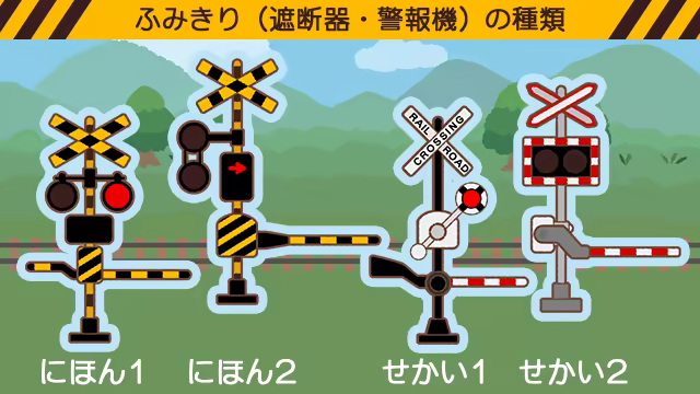 「ボタン」は、画面下部に出ている「遮断器」「在来線」「新幹線」「SL」のボタンをクリック(コントローラーの時は、十字キー・A・X・Yボタン)を押すとそれぞれのアクションをします。