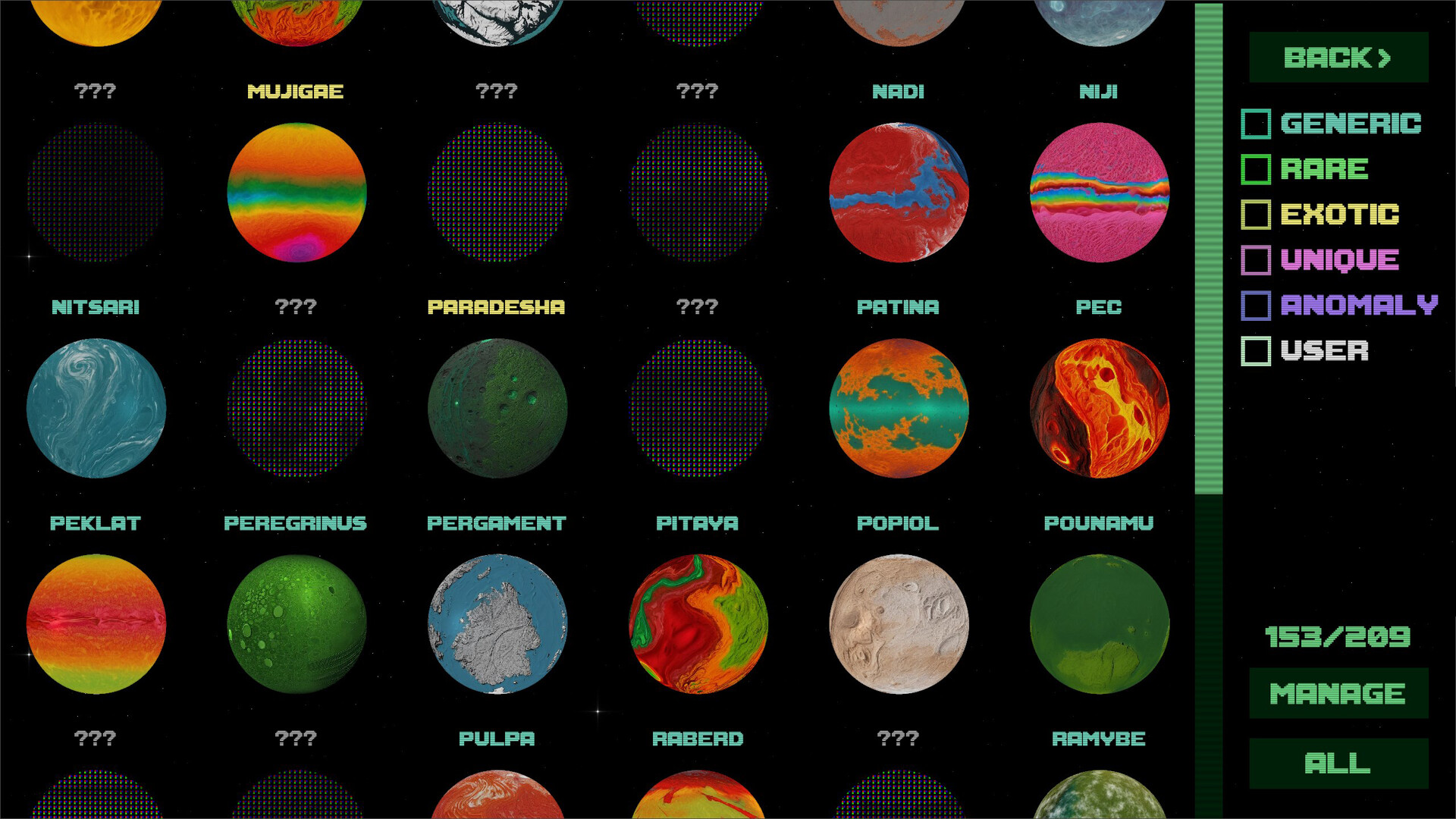 Discover over 300 unique planets to complete a premade catalog. But the collection doesn't stop there. Make the universe truly yours by adding YOUR OWN PLANETSsimply use your own images to seamlessly integrate them into the procedural generation pool for you to find on future voyages.