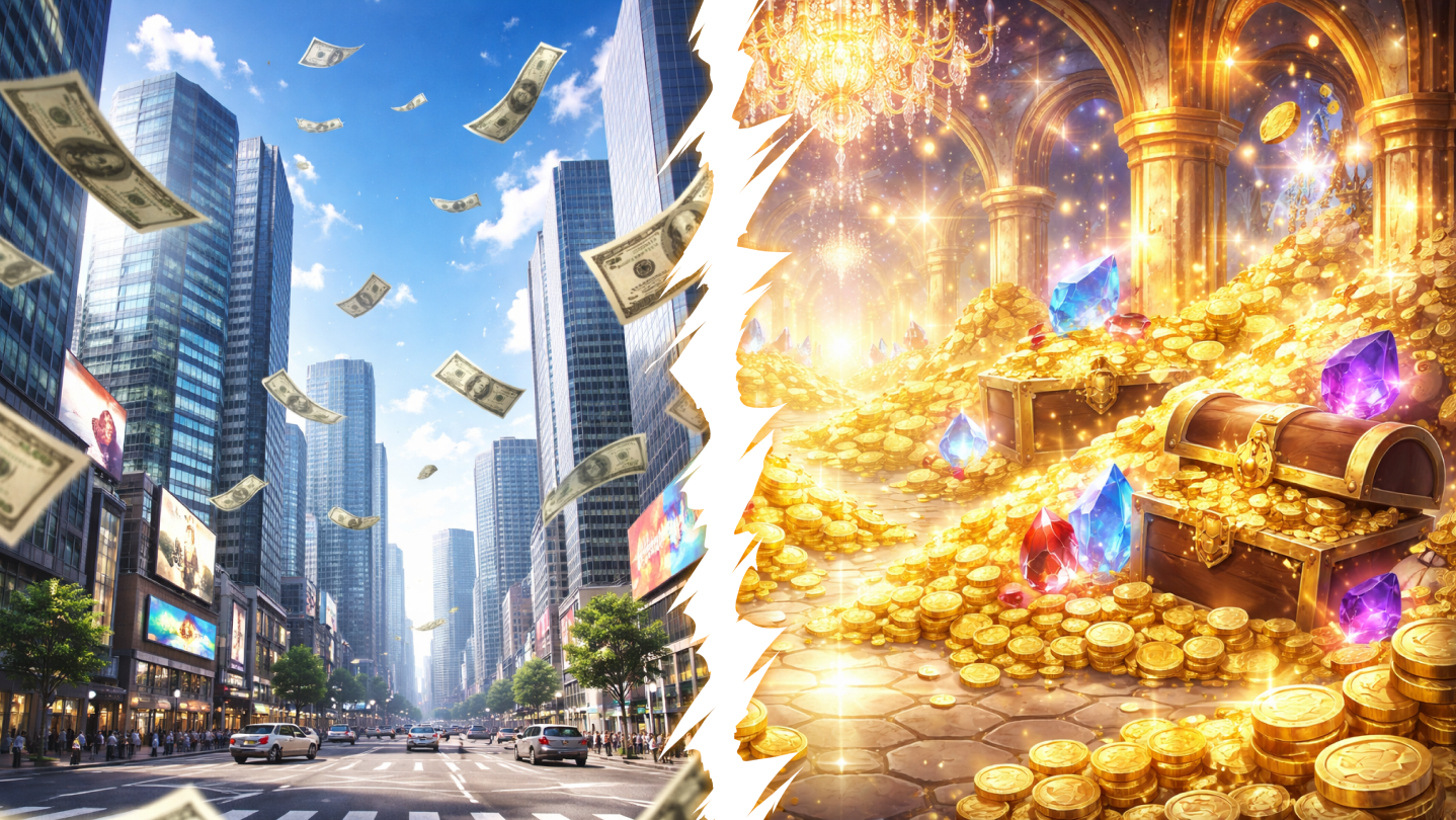 Experience the life of a whale. Hit the streets, earn cash, and pour massive amounts of money into an online game. Use your maxed-out account to crush other players!