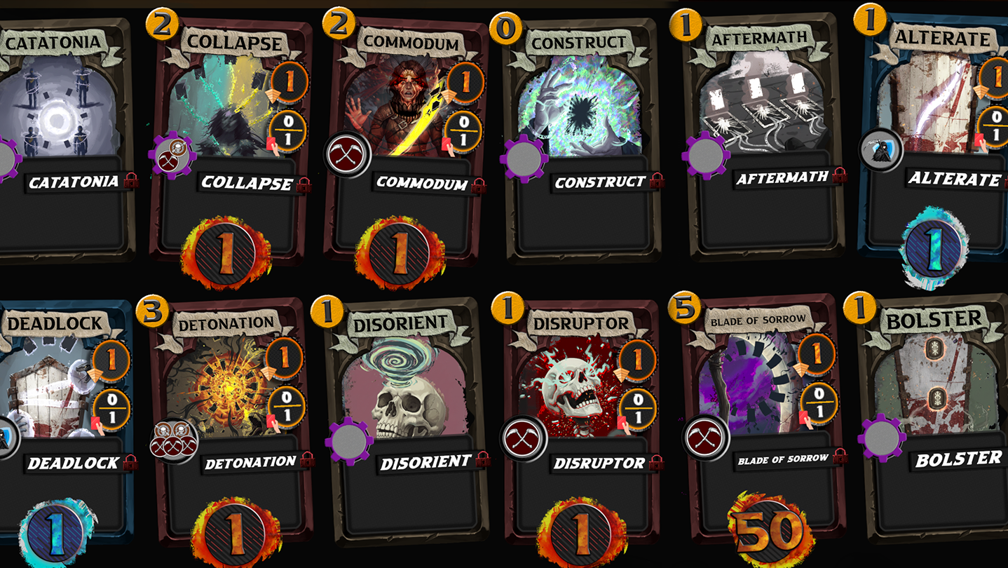 Most enemy cards have Chain Connectors on both sides. Grim’s five-card deal can create deadly combos, letting him play multiple cards in one turn. Break his chains, crush his enemies, and survive the assault.