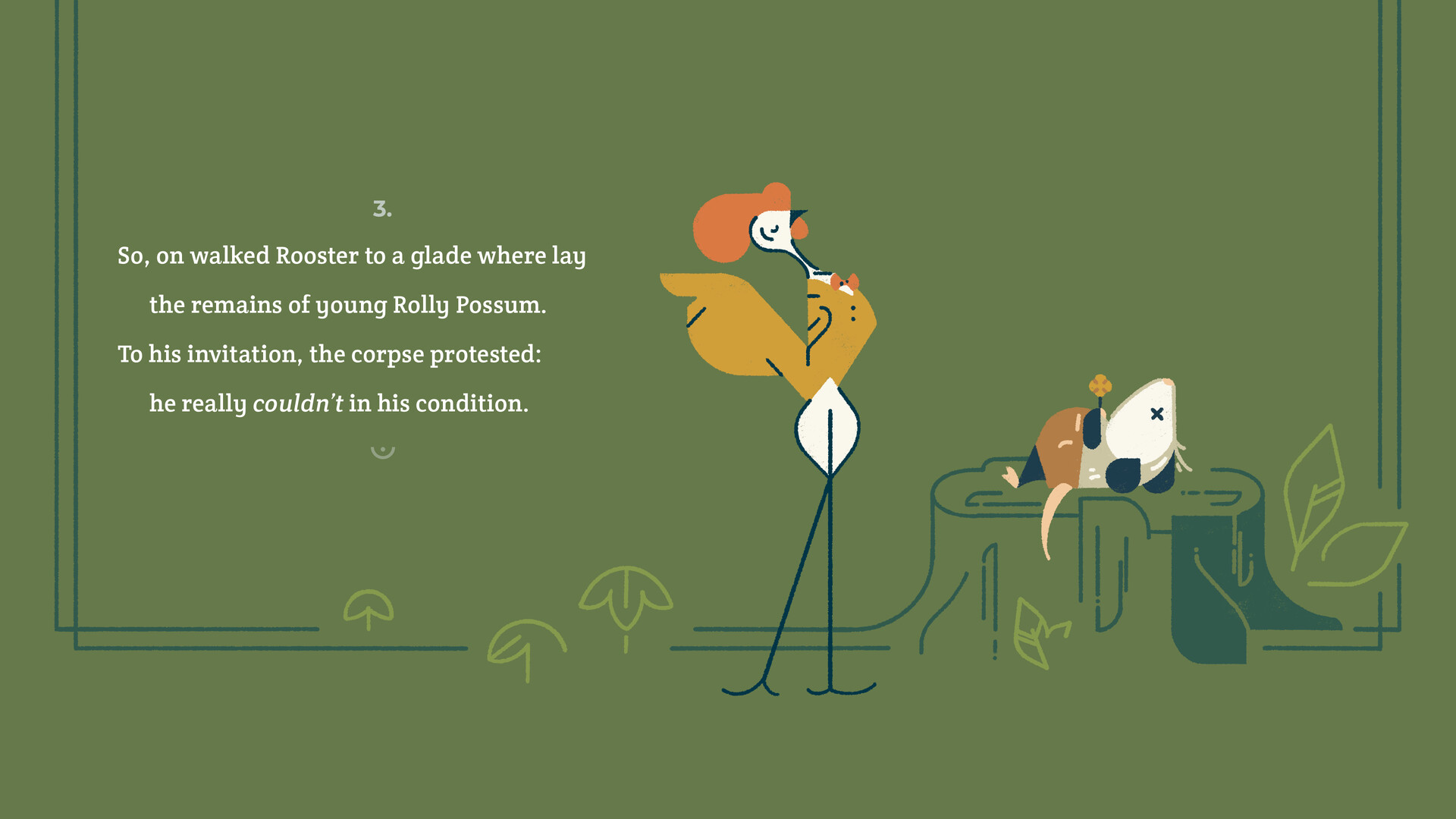 A time-looping puzzle ballad of Ozark folk superstition. Reorder events in time to unravel the legend of a weather-making rooster.