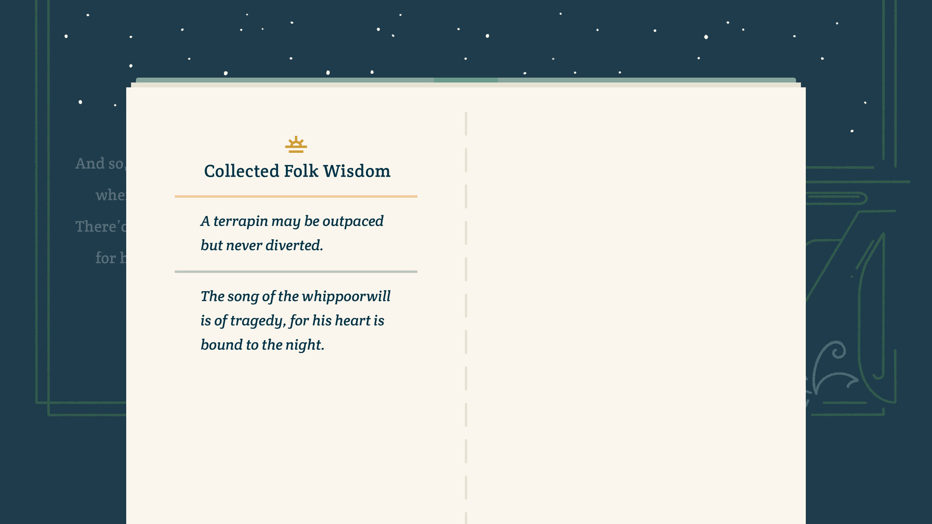 As a folklorist visiting the rugged hill country of the Ozarks, your chronicle of local lore is at the mercy of an unreliable storyteller. You’ll need to help sort his wayward ballad by rearranging its stanzas—but even this is not so straightforward. Each stanza you move is also a moment in time: shaped, like most folklore, by what comes before.
