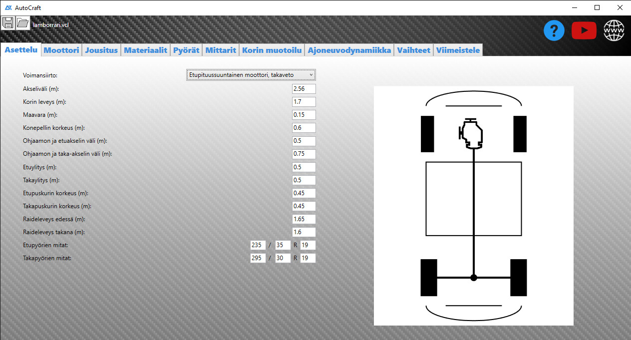 AutoCraft on tehokas Windows-sovellus räätälöityjen ajoneuvojen suunnitteluun alusta alkaen – moottori, jousitus, voimansiirto, 3D-kori ja paljon muuta. Vie suunnitelmasi peleihin kuten BeamNG.drive verkkosivustomme kautta. Suunnittele, mukauta ja aja luomuksiasi!