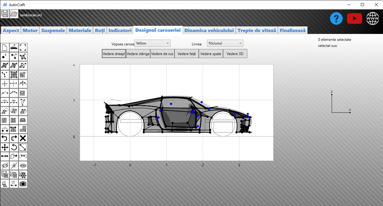 AutoCraft este o aplicație Windows pentru proiectarea vehiculelor: motor, suspensie, transmisie, caroserie 3D și altele. Exportați proiectele în BeamNG.drive prin site-ul nostru.