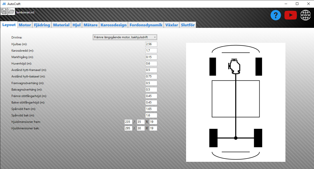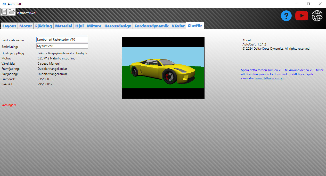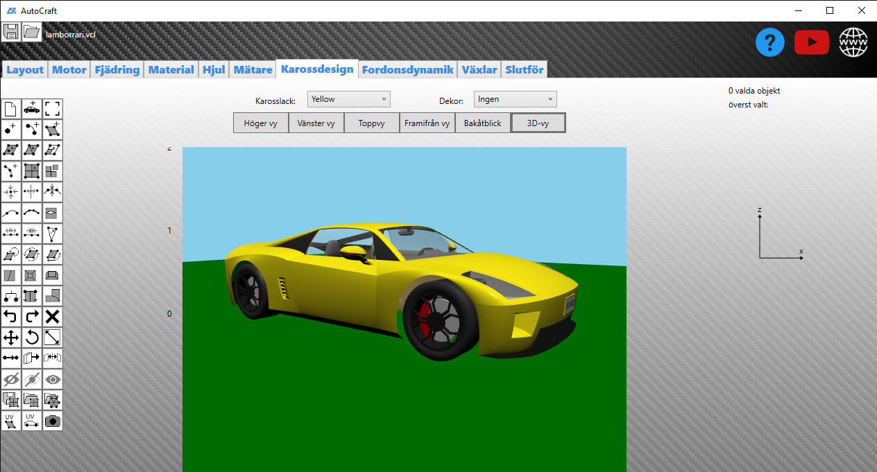 AutoCraft är en heltäckande fordonsdesignapplikation för Windows, byggd för kreatörer som vill ha full kontroll över de tekniska och visuella aspekterna av anpassade fordon. Oavsett om du är entusiast, designer eller bara nyfiken på fordonsingenjörskonst ger AutoCraft dig verktygen för att förvandla idéer till virtuella maskiner – från drivlinelayout till fjädringsgeometri, motorinställning och karossdesign.