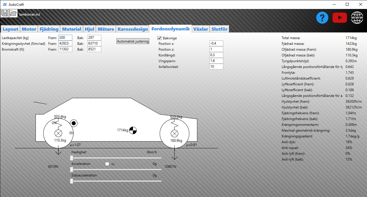 🧠 Realistisk fordonsdynamik – Simulera och finjustera hantering, viktfördelning och beteende.
