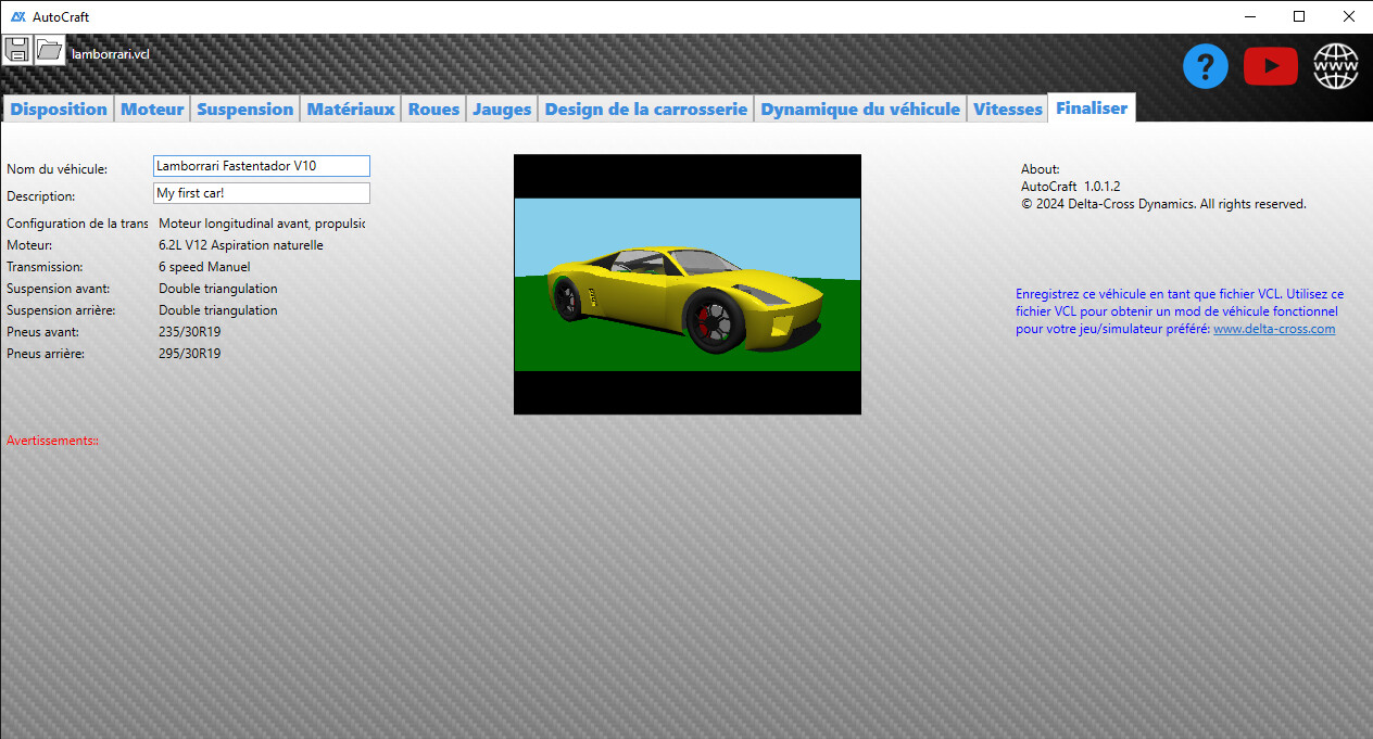 • Notes supplémentaires : For exporting vehicles to games like BeamNG.drive, a stable internet connection is required.