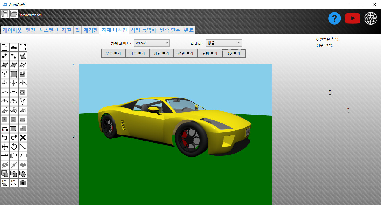 🛠 정교한 3D 차체 디자인 – 외관을 원하는 형태로 제작하고 세부적으로 다듬기.