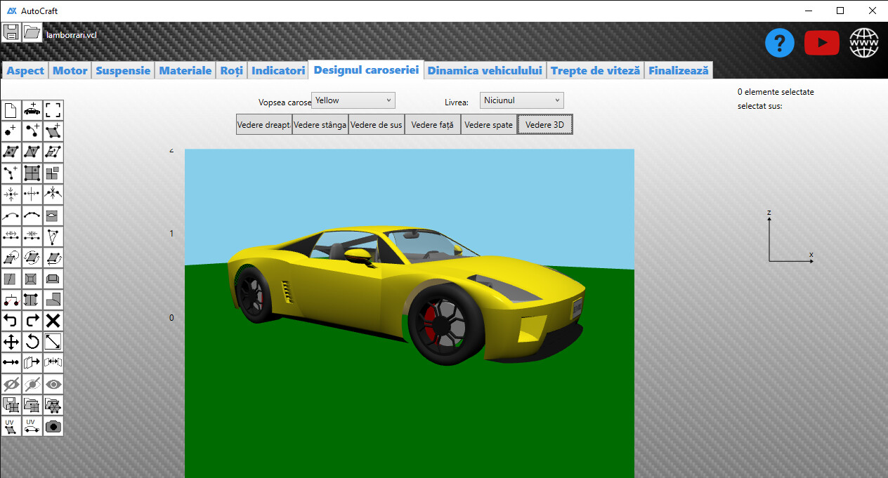 AutoCraft este o aplicație Windows pentru proiectarea vehiculelor: motor, suspensie, transmisie, caroserie 3D și altele. Exportați proiectele în BeamNG.drive prin site-ul nostru.