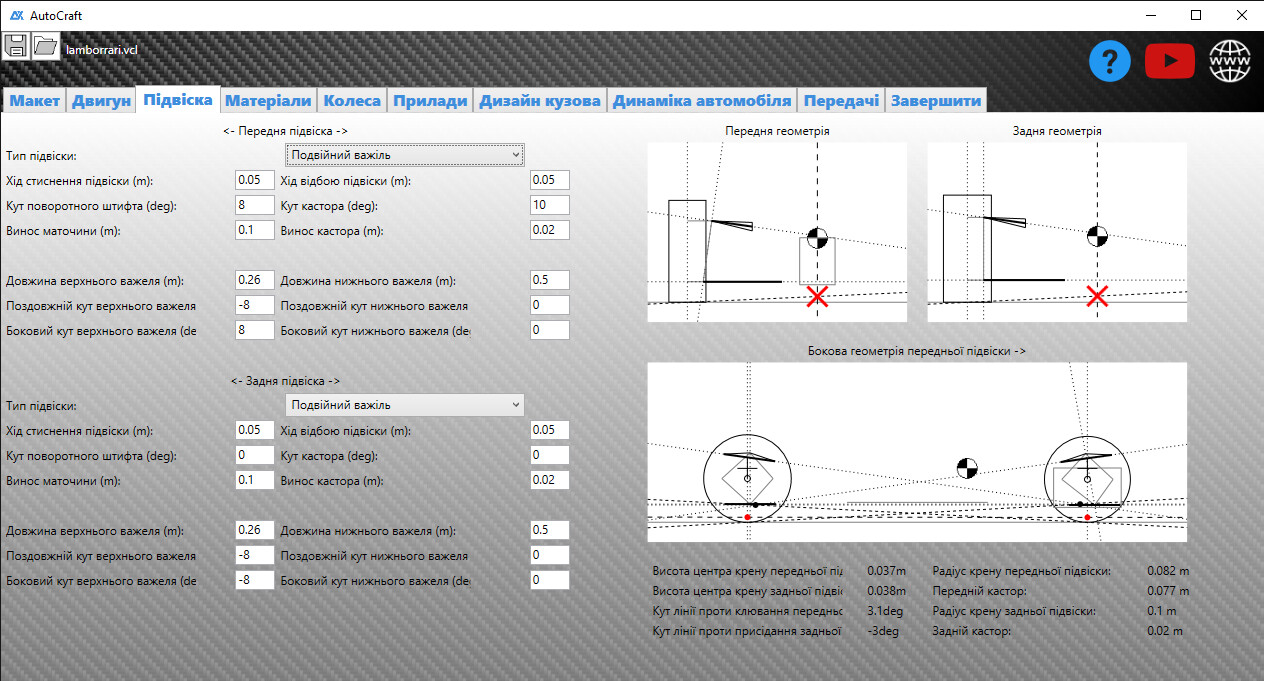 AutoCraft — додаток для Windows для створення авто: двигун, підвіска, трансмісія, 3D-кузов тощо. Експортуйте проєкти в BeamNG.drive через наш сайт.