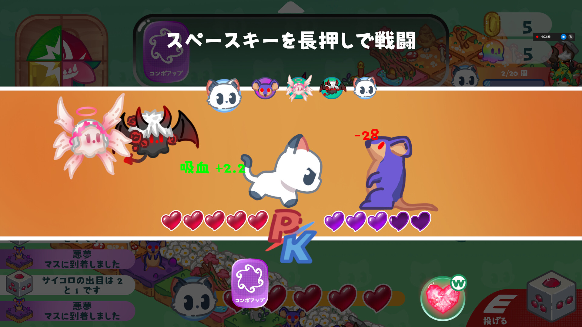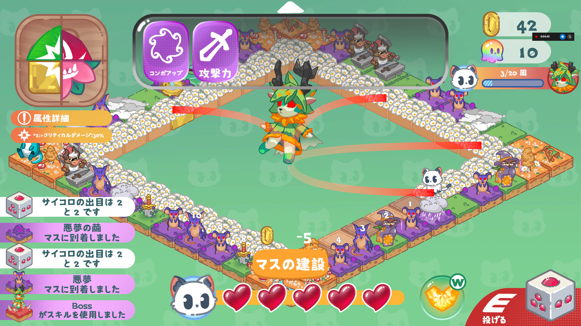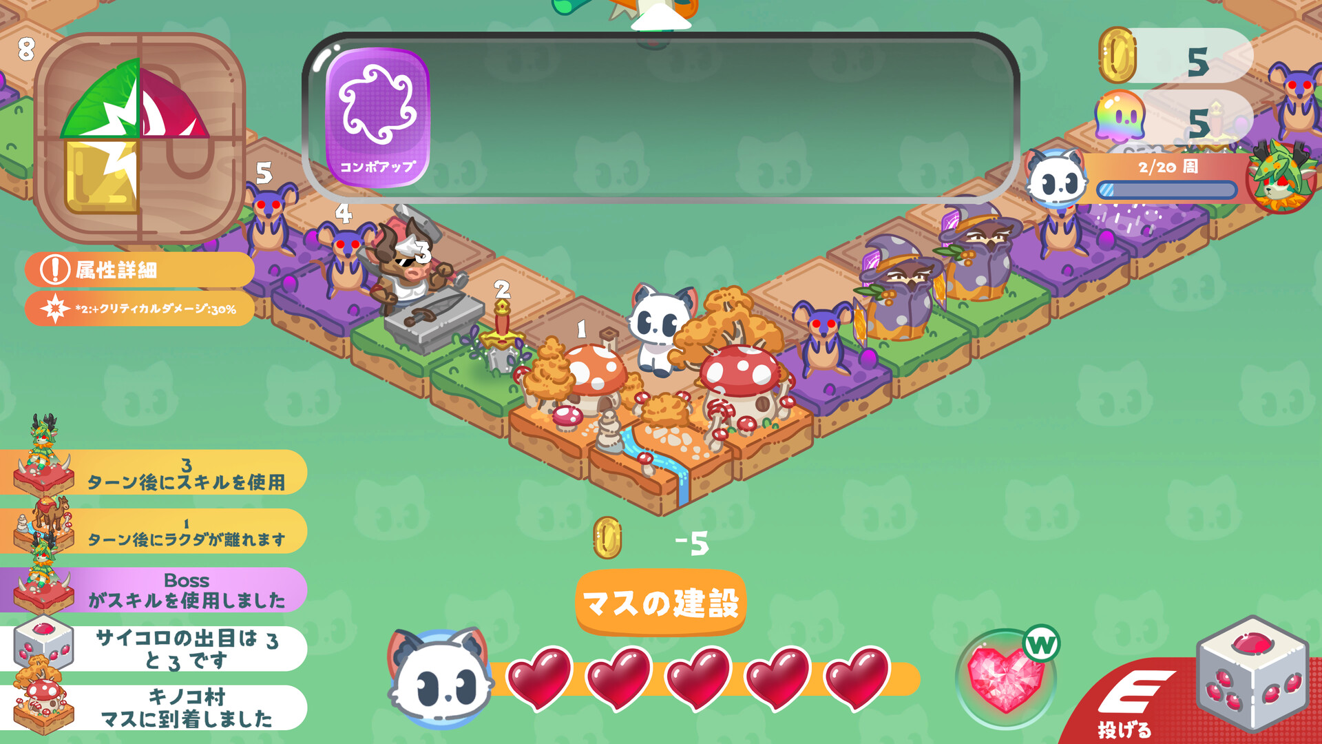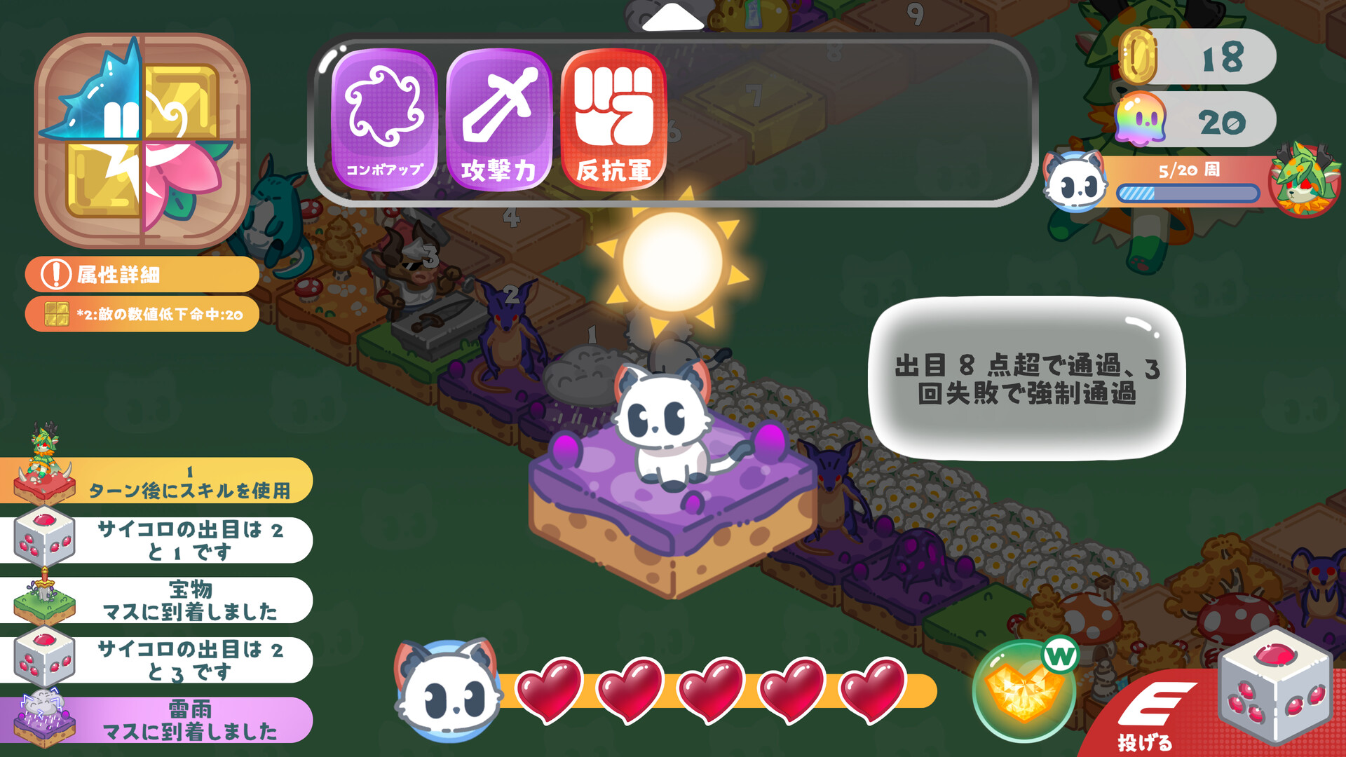モノポリーのゲーム性を取り入れたターン制RPG!夢の森が悪夢に襲われ、悪夢の侵食を防ぐため、かわいい子猫たちが出撃!