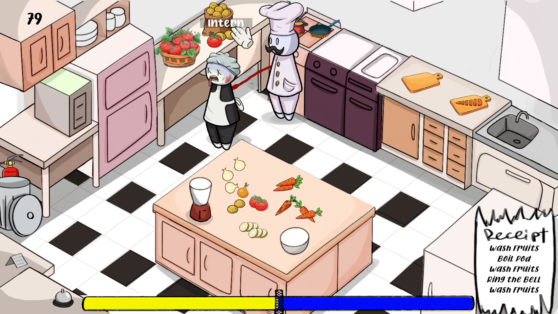 A chaotic 1v1 PvP game where an intern tries to cook and deliver meals, while the chef does everything possible to sabotage them. Expect flying pans, crazy teamwork, and endless laughter in this hilarious kitchen showdown!