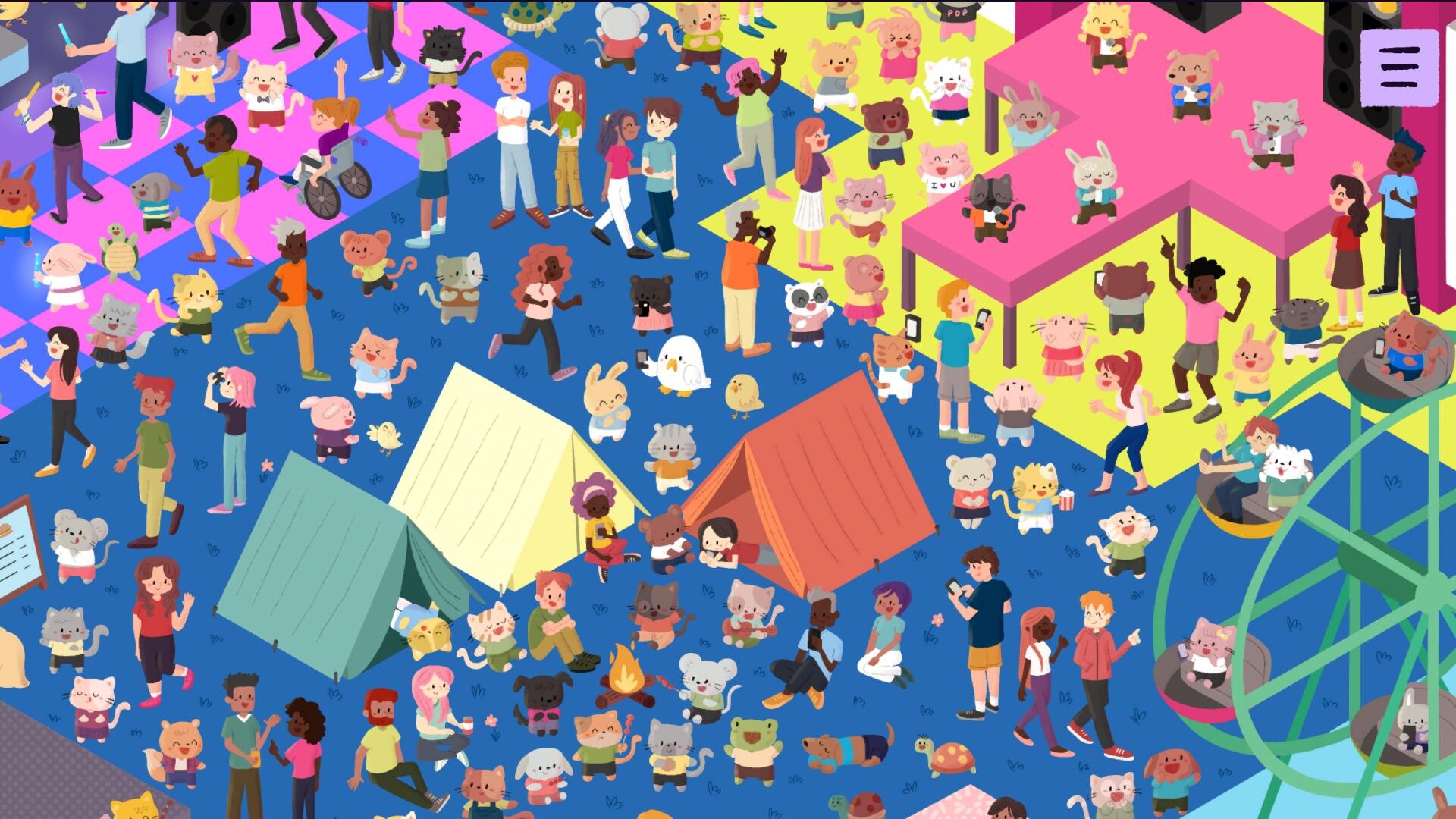 Join the celebration in a lively outdoor scene where cats and friends gather to enjoy music, creativity, and joyful moments. Explore a colorful festival filled with diverse vibes and shared experiences.
