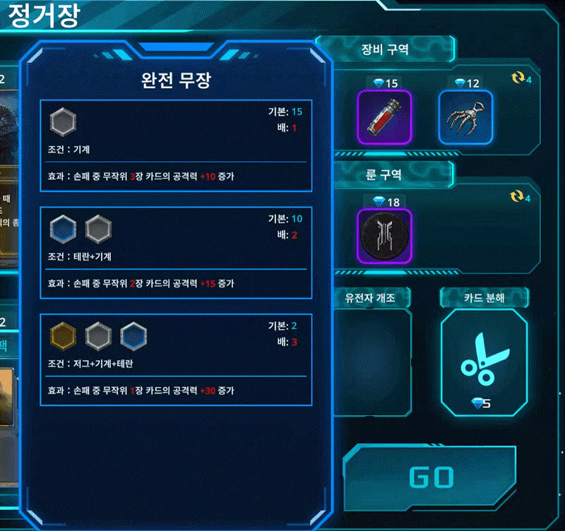 우주 정거장에서 카드를 구매하고 장비 및 룬을 얻거나 카드를 분해하고 업그레이드할 수 있습니다!