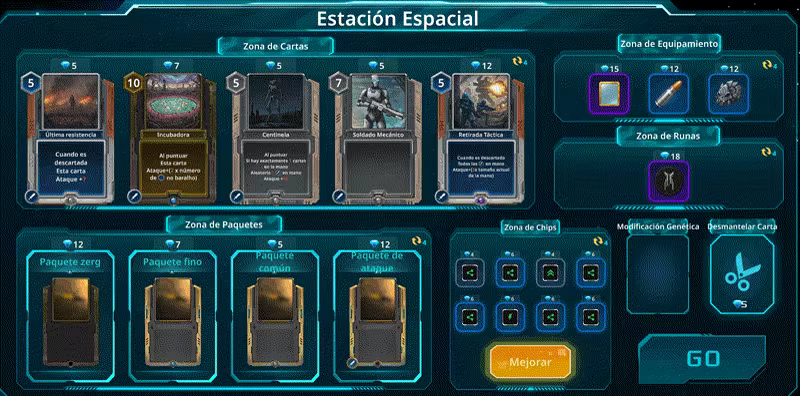 En la estación espacial podrás comprar cartas, equipo, runas, desmontar cartas e incluso mejorarlas.