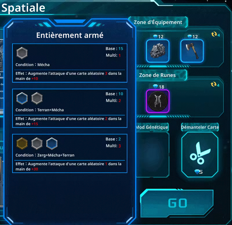 Les runes améliorent considérablement votre deck. Jouez les cartes correspondant aux conditions des runes pour obtenir de puissants effets et bonus.