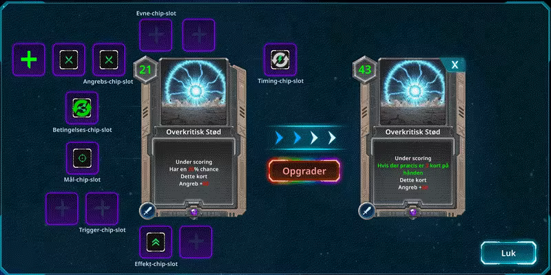 Har du et kraftfuldt kort med svære betingelser? Bare rolig! Skift betingelser, tilføj effekter og forvandl selv simple kort til stærke kort med én opgradering!